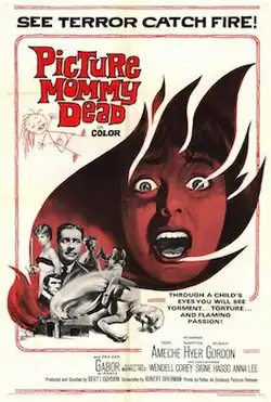 Picture Mommy Dead is a 1966 American psychological horror film directed by Bert I. Gordon and starring Don Ameche, Martha Hyer, Susan Gordon, and Zsa Zsa Gabor.[3][4] It follows Susan Shelley, a young girl who, after being released from a mental institution following her mother Jessica's death, begins to experience strange events in the family's mansion.