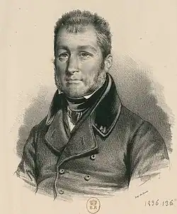 In the elections of 5 July 1831 Audry was reelected for Rochefort, Charente-Maritime.[14] In September 1831 Audry de Puyraveau was among the deputies who declared themselves against a hereditary peerage.[15] The Orleanist outcome of the July Revolution had only partly satisfied him, and in 1832 he was a member of the steering committee that founded the Society of the Rights of Man (Société des droits de l'homme) intended to maintain the revolutionary spirit. In the general election of 21 June 1834 Audry lost his seat to Vice Admiral Grivel, but the election was annulled. In a re-run on 20 September 1834 Audry defeated Grivel and was returned as deputy for Rochefort.[14]