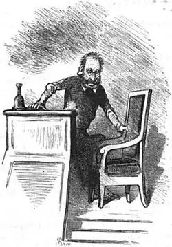 Audry, at that time a rich and powerful man, invited the deputies from the Left to meet in his house beside his rolling factory on 28 July. When they arrived they found the courtyard filled with students and workers whom he had called to stir up his guests.[7] The meeting was in a ground floor room, with the windows open, in full view of the crowd in the courtyard.[8] Mauguin demanded the formation of a provisional government, but the deputies could not agree on a protest that François Guizot had written, which said only that the advisers of the king had deceived his intentions.[1]