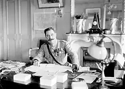 On March 26, 1908, he was promoted to colonel.[21] He served in the 28th Colonial Infantry Regiment.[2] On July 1, 1910, he became commander of the 1st Malagash Tyralliers Regiment.[5] On December 1 of the same year, he was appointed director of the 1st Bureau of the Colonial Troops.[22] On December 30, 1911, he took over as director of the colonial troops.[23] On February 14, 1912, he became a member of the National Committee for the Defense of the Colonies.[24] On October 23, 1912, he was promoted to the rank of brigadier general.[25]