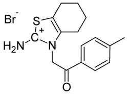 Pifithrin-α (chemical name 2-(2-Imino-4,5,6,7-tetrahydrobenzothiazol-3-yl)-1-p-tolylethanone hydrobromide[1]) is a chemical compound which acts as an inhibitor of the tumour-suppressing and epileptogenic protein p53.[2][3] It has a molecular weight of 367.30 and is soluble in DMSO up to 20 mg/mL. Its melting point is 192.1-192.5 °C.