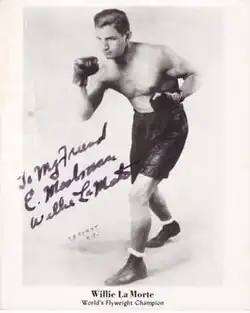 In what may well have been his only loss by knockout, on April 5, 1926, Silverberg lost to accomplished boxer Willie LaMorte at Footguard Hall in Hartford, Connecticut, in a difficult bout lasting only three rounds.[3] Apparently LaMorte had Silverberg down cold, as Pinky lost to LaMorte again on June 25, 1928, at Laurel Garden in Newark, New Jersey in a ten-round points decision. According to the Newark Star-Eagle, LaMorte floored Silverberg in the first round, taking all but two of the rounds in the bout.[3]