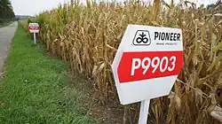 Pioneer makes and sells hybrid seed and genetically modified seed, some of which goes on to become genetically modified food. Genes engineered into their products include the LibertyLink gene, which provides resistance to Bayer's Ignite/Liberty herbicides; the Herculex I Insect Protection gene which provides protection against various insects; the Herculex RW insect protection trait, which provides protection against other insects; the YieldGard Corn Borer gene, which provides resistance to another set of insects; and the Roundup Ready Corn 2 trait, which provides crop resistance against glyphosate herbicides. In 2010 Dupont Pioneer received approval to start marketing Plenish soybeans, which contains "the highest oleic acid content of any commercial soybean product, at more than 75%".[8] Plenish is genetically engineered to "block the formation of enzymes that continue the cascade downstream from oleic acid (that produces saturated fats), resulting in an accumulation of the desirable monounsaturated acid."[9]