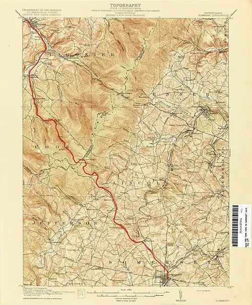 - ^ a b c Walton, Walter F. (1982). The South Pennsylvania Railroad or the Railroad that Might Have Been. Pittsburgh, Pennsylvania: American Society of Civil Engineers, Pittsburgh Section. pp. 43–47.