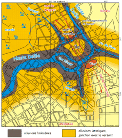 At the beginning of the 14th century, chalk was laid down,[31] followed regularly by thick embankments to raise the ground, which was still flooded during the highest floods.[34][35] Merchants who came to sell their wares paid a tax at the entrance to the town, in exchange for which they received tax méreaux certifying that they were in good standing. In the 14th century, a layer of evenly packed limestone was laid down, definitively establishing the site's purpose as a market square.[22][29] (it took this name around 1350[15]), hosting the numerous stalls of merchants sheltered under canvas awnings, which they set up as they pleased,[34] without the alderman being able to enforce compliance with the defined locations.[36]