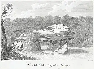 - ^ Plas Newydd Burial Chambers (ID NPRN93829). at the Royal Commission on the Ancient and Historical Monuments of Wales (RCAHMW). GAT PRN: 2171. The Cadw SAM Number is AN005