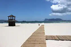 It extends from the Puente de Acceso Norte access to the mouth of the Rio Palmones,[1] a total length of 2550 metres and an average width of 40 metres including Rinconcillo beach itself and a small cove called La Concha. The beach has two distinct areas, the first is southern part of the beach, surrounded by the suburb of El Rinconcillo and several bars and restaurants,[2] and is characterized by shallow water, making it ideal for swimming. The second area, which is completely undeveloped, is nearest to the river mouth. It is surrounded by the river marshes and the Palmones dunes. This area is steeper and has deeper water than in the first section of the beach. The estuary here attracts numerous birds.