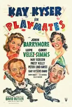 Playmates is a 1941 American comedy film directed by David Butler and written by James V. Kern. The film stars Kay Kyser, John Barrymore (in his final film), Lupe Vélez, Ginny Simms, May Robson and Patsy Kelly. It was released on December 26, 1941 by RKO Radio Pictures.[1][2]