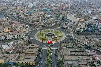 The Plaza Bolognesi is a roundabout located in the Lima District and the Breña District, in the capital of Peru. It is located at the intersection of Brazil Avenue, Arica Avenue, Alfonso Ugarte Avenue, Guzmán Blanco Avenue, and 9 December Avenue.