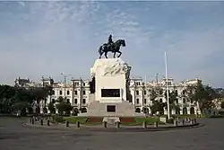 San Martín Square (Spanish: Plaza San Martín) is one of the most representative public spaces of the city of Lima, Peru. It is located at the ninth block of Colmena avenue, within the Historic Centre of Lima which was declared a World Heritage Site in 1988 by UNESCO. It is located near the Plaza Mayor and is connected to it by the Jiron de la Union. Its central monument gives homage to Peru's liberator, José de San Martín.