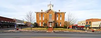 The Pocahontas Commercial Historic District encompasses the historic civic heart of Pocahontas, the county seat of Randolph County, Arkansas. The district includes roughly five-block stretches of Broadway and Pyburn and Everett Streets between US 67 and Bryant Street, and extends across US 67 to include a small complex of industrial buildings and the former railroad depot. Founded in 1836, the center of Pocahontas is dominated by the Old Randolph County Courthouse, a handsome Italianate structure built in 1875 which now houses city offices. It is surrounded by commercial buildings, generally one or two stories in height, most of which were built between 1900 and 1930, although there are a few 19th-century buildings. Later growth extended away from this center. Other notable buildings in the district include the present Randolph County Courthouse and the 1930s Art Deco style Post Office building.[2]