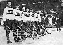 LKS Pogoń Lwów is a former Polish professional sports club which was located in Lwów, Lwów Voivodeship (now Lviv in Ukraine), and existed from 1904 until the outbreak of World War II in 1939. It was the oldest Polish football club, only behind other teams from Lwów – Czarni and Lechia. With numerous departments, among them football, ice hockey and track and field, Pogoń was a major force of Polish sports in the interbellum period; its football team was never relegated from the elite Polish Football League. The club ceased to exist in September 1939, following German and Soviet aggression on Poland. On 2 July 1939, Pogoń played last pre-war official home game, drawing 1–1 with AKS Chorzów. The last pre-war game of the Pogoń's football team took place in Warsaw on 20 August 1939. Lwów's side lost 1–2 to Polonia Warsaw. The last goal was scored by the 20-year-old forward Piotr Dreher. A club under the same name wishing to continue its traditions was formed in 2009.