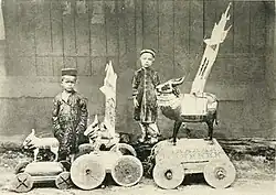 On the following day, children decorate wooden bulls with beads and flowers.[2]