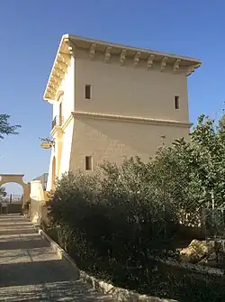 Polidano also owns the Montekristo Estates holding outside Siġġiewi, including event venues, entertainment facilities, a zoo, a restaurant, a winery, and an olive oil mill operation, which Malta's Planning Authority once described as “one of the largest illegally-built construction sites on the island”.[11] In November 2013 the Planning Authority descended on the site together with soldiers and police to demolish illegalities, including a replica of a Knights of Malta tower, a classical-style building and a four-storey edifice with a pool being used as a cafeteria.[12] However, any demolition was prevented by a court injunction elicited by Polidano.[13] In June 2020 the Planning Authority stopped illegal works at the site (two towers on either side of the main gate), after Polidano had gathered over €700,000 in daily fines.[12]