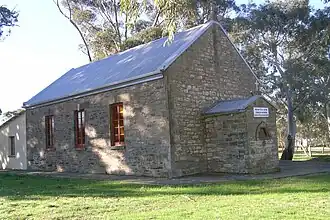 Following earlier pastoralism, closer settlement in the area began in the early 1850s, with the arrival of Irish Catholic migrants, including the Barry, Sullivan, Erwin, and Rochford families who were all from Glendalough, County Wicklow. The first white child born at Hill River was claimed to be James Erwin, in 1853.[4] Polish Hill River was also established in the 1850s south of the Hill River settlement, around the church of St. Stanislaus Kostka by Polish Catholic immigrants.[2] These included Dr Anton Sokolowsky (d.1862).
