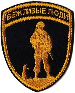 Russian media referred to them with the euphemism "polite people" (Russian: вежливые люди, romanized: vezhlivye lyudi)[6][7] due to their well-mannered behaviour, as they kept to themselves and mostly made no effort to interfere with civilian life while also refusing to interact with journalists.[8]