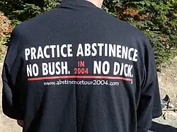 A political T-shirt is a T-shirt that has a political slogan or image printed on it and which is intended to convey a political message.