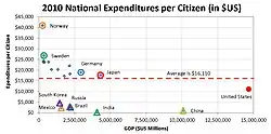 - ^ CIA World Factbook, population data from 2010, Spending and GDP data from 2011