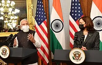 - ^ Dhar, Aniruddha (June 23, 2023). "Kamala Harris 'thanks' PM Modi for global leadership. 'History teaching of India has…'". Hindustan Times. Retrieved October 16, 2024.