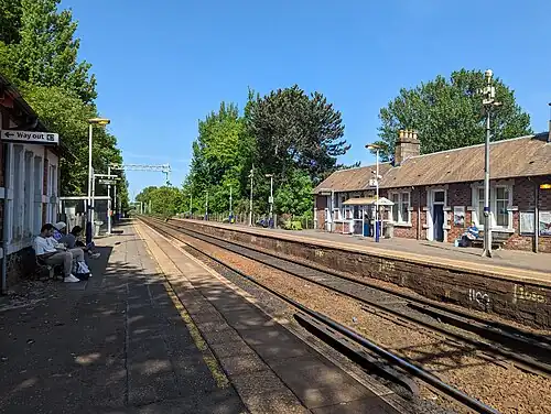 The station is normally served by a service every half hour to Barrhead (Mondays — Saturdays only), Kilmarnock and to East Kilbride, and four trains per hour to Glasgow Central. On Sundays, there are half hourly services to Glasgow Central, with hourly services to East Kilbride and Kilmarnock. There is no Barrhead service on Sundays, as Kilmarnock trains operate all stops.[4] Additionally, one Kilmarnock service extends to Carlisle on Sundays only.
