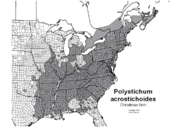 - ^ "NatureServe Explorer 2.0 - Polystichum acrostichoides Christmas Fern". explorer.natureserve.org. Retrieved 9 October 2020.