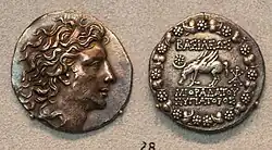 It is likely that the first coinage was struck during Mithridates II's reign, which is assumed to have lasted from approximately 255 to 220 BC. The first Pontic coinage mimicked other coinage with Alexander the Great's image on them.[2][3] Mithridates III had issued a substantial amount of silver coinage by the end of his reign. He was also the first Pontic ruler to have a coin with his own portrait.[2][3]
