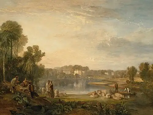 Pope's Villa at Twickenham is an 1808 landscape painting by the British artist J.M.W. Turner. It depicts a view along the River Thames at Twickenham towards Pope's villa, the riverfront former home of the poet Alexander Pope.[1] The property had survived for more than sixty years after Pope's death but was pulled down the previous year by Lady Howe[2]
