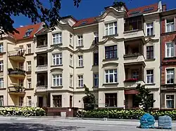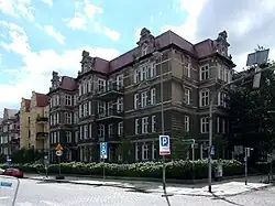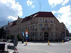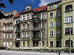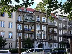 Between 1886 and 1888, a representative building, König-Wilhelms-Gymnasium,[g] was erected on the street according to Richard Rönnebeck's design[8] (currently the rectorate of the University of Szczecin), and in the following decade, the construction of multi-story tenements in the quarters adjacent to the street began.[5] An example of a house built at that time is the eclectic tenement at No. 42 from 1898.[9]