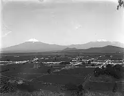 A different tale was told by the Nahuatl-speakers of Tetelcingo, Morelos,[5] according to whom Iztaccíhuatl was the wife of Popo, but Xinantécatl wanted her, and he and Popocatépetl hurled rocks at each other in anger. This was the genesis of the rocky mountain ranges of the continental divide and the Trans-Mexican Volcanic Belt that lie between the two mountains. Finally Popocatépetl, in a burst of rage, flung an enormous chunk of ice, decapitating the Nevado de Toluca. This is why the Nevado is flat-topped, with wide shoulders but no head. Conceivably this legend preserves the memory of catastrophic eruptions.[6]