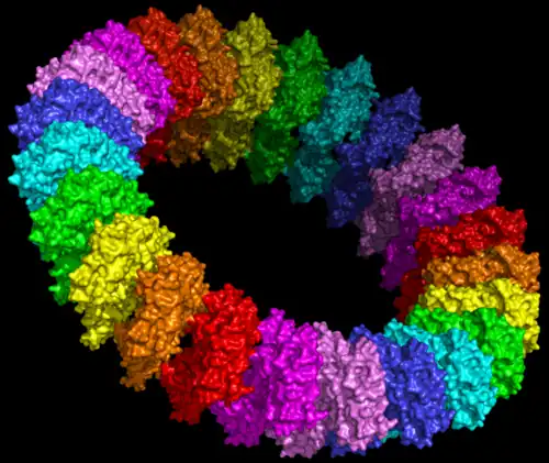 33. ^ Tilley SJ, Orlova EV, Gilbert RJ, Andrew PW, Saibil HR (April 2005). "Structural basis of pore formation by the bacterial toxin pneumolysin". Cell. 121 (2): 247–256. doi:10.1016/j.cell.2005.02.033. PMID 15851031. S2CID 1613454.