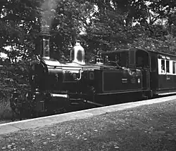 Port St Mary Railway Station (Manx: Stashoon Raad Yiarn Phurt Le Moirrey) is a station in Port St Mary in the south of the Isle of Man and is served by the Isle of Man Railway, having first opened in 1874 when the line to nearby Port Erin was completed. It forms part of the sole remaining section of the railway which once covered a network of some 46 miles across the island. The station is less than a mile away from the terminus and has no passing loop or run-round facilities, but a siding serving the goods shed was lifted in the 1979 but reinstated in 2002 at the same time as the whole of the permanent way was replaced along the line. When reinstated, the siding was not connected to the imposing goods shed, however in the winter of 2007/2008 rail connections were restored. A second siding which once served the rear of the shed was removed in 1974 and has not been replaced. Both sets of facing points were on the northern approach, the second lifted siding running parallel to the shed access as far as the exterior loading platform.