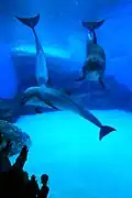 In 2001, the aquarium built a new facility, including a 60 m (200 ft) wide, 30 m (98 ft) long, 13,500,000 litres (3,566,000 US gal) show pool, with a water depth of 12 m (39 ft). When it opened, it was the largest dolphin show tank in the world.[1]