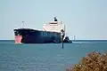 Access by oceangoing vessels into and out of the harbour is via a narrow curved channel. The following series of images depicts a 225 m (246.1 yd) long bulk carrier, Darya Shanthi, using the channel to enter the harbour. Visible in the foreground of each image is part of the harbour's system of mangroves.