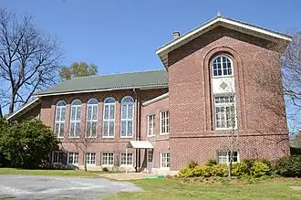 The Portland United Methodist Church is a historic church building at 300 N. Main St. in Portland, Arkansas The Craftsman style two story T-shaped building was built in 1924 to a design by architect John Parks Almand. The building is faced in brick laid in a running bond pattern. The roof is ceramic tile, with broad overhanging eaves supported by distinctive triangular knee braces. The building is the largest and most prominent building in Portland's small downtown area.[2]