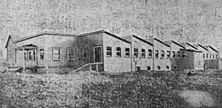 At its inception, the mill could produce 1,500 yards of wool per day.[7] By 1913, that number was nearly 60,000 yards per day.[8] During a large town-wide fire in 1905, the Portland Woolen Mills suffered US$300 worth (US$10,499 adjusted for inflation) of damage.[9] In 1913, the mill constructed a new 80 ft. by 200 ft. building on the site which cost US$600,000 (US$1,908,889 adjusted for inflation).[10] Vents in the roof were added to the entire building during the renovations. Lewis I. Thompson was the architect who designed the new building. During this time, the company decided to install a cafeteria and library for their employees.[8] The renovations allowed management to add 500 new workers which doubled their overall productivity.[11]
