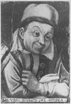 Portrait of the court jester Gonella (Italian: Ritratto del Buffone Gonella) is a painting attributed to Jean Fouquet. It is believed to depict Pietro Gonella, a jester at the court of Este in Ferrara. The painting was created around 1450 and is currently housed in the Vienna Kunsthistorisches Museum.