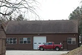 The Poteau Work Center is a utility building located at the Poteau District Headquarters of the Ouachita National Forest in Waldron, Arkansas. It is a rectangular single-story wood-frame building with gable roof, and is distinguished by centrally located garage doors on each of its long sides. The building was (along with the adjacent residence), constructed about 1939 by a work crew of the Civilian Conservation Corps.[2]