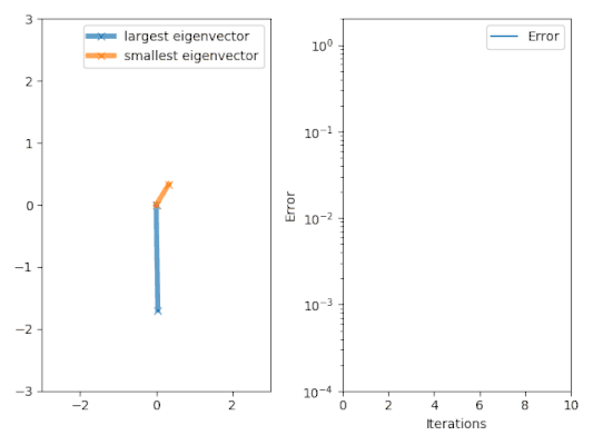 Therefore, converges to (a multiple of) the eigenvector . The convergence is geometric, with ratio