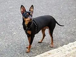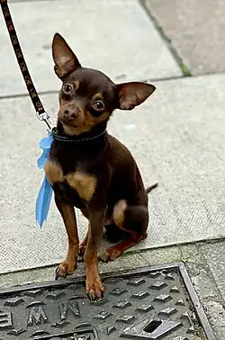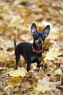 The Pražský Krysařík is a small toy dog, similar in appearance to the Chihuahua and the Miniature Pinscher, with a height of 20 to 23 centimetres (7.9 to 9.1 in) and a weight of 1.5 to 3.5 kilograms (3.3 to 7.7 lb).[1][2]