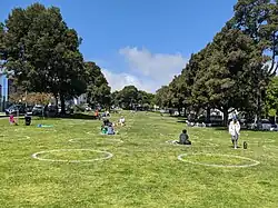 ![]() Precita Park in 2020, showing social-distancing circles | |