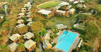 The school is situated approximately 25 km north of Chiang Mai in Mae Rim District. It caters to day students from Chiang Mai and boarders from all over the world. Its boarding program offers students academic support and cross-cultural experiences, as well as outdoor, leadership, creativity and sporting opportunities. Weekly boarding and full boarding options are available. The accommodation in boarding comprises dormitories, apartments (up to 4 bunks), and even a hotel for short-term stays. Separate staff apartments are located within the student buildings for supervision.[9]