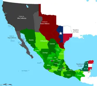 The United States had been the first country to recognize Mexico's independence following the Mexican War of Independence, but relations between the two countries began to sour in the 1830s.[70] In the 1830s and 1840s, the United States, like France and Britain, sought a reparations treaty with Mexico for various acts committed by Mexican citizens and authorities, including the seizure of American ships.[70] Though the United States and Mexico had agreed to a joint board to settle the various claims prior to Polk's presidency, many Americans accused the Mexican government of acting in bad faith in settling the claims.[70] For its part, Mexico believed that the United States sought to acquire Mexican territory, and believed that many Americans filed specious or exaggerated claims.[70] The already-troubled Mexico–United States relations were further inflamed by the possibility of the annexation of Texas, as Mexico still viewed Texas as an integral part of their republic.[71] Additionally, Texas laid claim to all land north of the Rio Grande River, while Mexico argued that the more northern Nueces River was the proper Texan border.[72] Though the United States had a population more than twice as numerous and an economy thirteen times greater than that of Mexico, Mexico was not prepared to give up its claim to Texas, even if it meant war.[73]