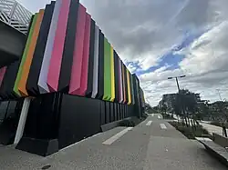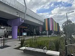 On 5 September 2022, the rebuilt station opened to the public.[24] The elevated station opened in a basic state, with lifts, paving and additional exits opened on the north side of the station.[25] In 2023, the open spaces were completed.[4] The Preston station area features an improved cycling and walking paths which opened in late 2022, expansive open space, newer and safer connections to popular local destinations and the station facades' bright colour which features a barcode reflecting the vivid colours of produce found at Preston Market.[4]