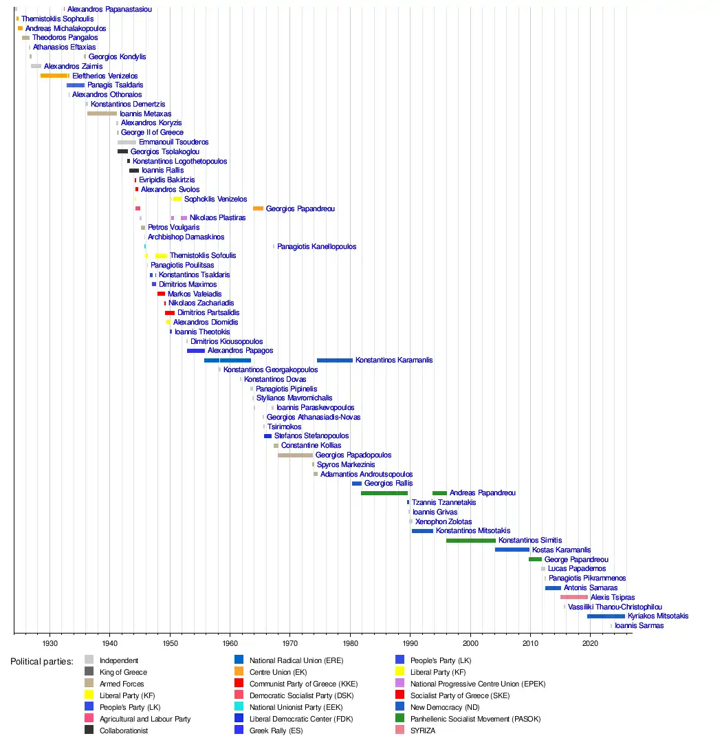 — | 24 July 1974 | 21 November 1974 | 5 years, 291 days | ERE | K. G. Karamanlis V (National Unity) (ΕRΕ–EK) |