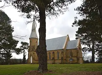 St Thomas' Anglican church lies in the locality of Primrose Valley and the civil parish of Yanununbeyan, despite the sign indicating that it is in Carwoola. The church was completed in 1874. | |||||||||||||||