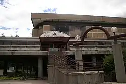 Army Camp Prince George was opened during WWII and once housed 6,000 soldiers. From March 1942 to October 1943, divisional troops and units of the 16th Infantry Brigade (8th Canadian Infantry Division) were housed there. The camp was located in the area of 1st Street, Central Street, 15th Avenue, to the bottom of Cranbrook Hill. Barracks were built to house the soldiers, dining halls constructed to feed them, and wet canteens for their leisure and entertainment. There were rifle ranges, mortar ranges and artillery ranges. The camp closed at the end of the war. Most of the buildings were either demolished or moved to new locations, although some remain in their original locations, such as the former transportation building on 15th Avenue, that was used by the British Columbia Forestry Service from the late 1940s to 1963. It is now owned by the City of Prince George for use by the Community Arts Council. The Nechako Bottle Depot on First Avenue is also another former camp building. Others include the first Overwaitea store, at Victoria and Third, formerly a barracks and the original civic centre, which was the old drill shed, was removed and rebuilt on Seventh Avenue.[22][23] Population during the war saw 2,027 in 1941 rising to 3,800 in Prince George by 1945.[6]