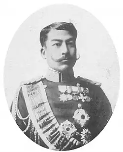 Kan'in became a veteran of both the First Sino-Japanese War (1894–1895) and the Russo-Japanese War (1904–1905). He was appointed to command the 2nd Cavalry Brigade in 1901. He rose to the rank of lieutenant general in 1905 and became the commander of the IJA 1st Division in 1906, and the Imperial Guard Division in 1911. He was promoted to the rank of full general and became a Supreme War Councilor in 1912. He was further promoted to become the youngest field marshal in the Imperial Japanese Army in 1919.[1] In 1921, he accompanied then-Crown Prince Hirohito on his tour of Western Europe.
