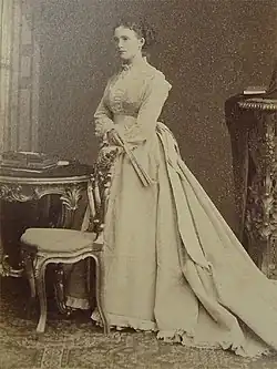 As a young woman, various candidates were put forth as potential husbands. One such possibility was Crown Prince Umberto of Italy.[1] Nothing came of this however, and Umberto later married Princess Margherita of Savoy. There were also planned for Eugenia to marry then Prince Ludwig of Bavaria, the nephew of King Otto of Greece, and have him convert to Eastern Orthodoxy to reassure the Greek people, but the plans came too late to help King Otto.