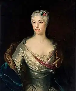 In 1757 she came into contact with the Parisian writer and theater and music critic Friedrich Melchior Baron von Grimm. Thanks to his connections, she was in lively exchange of ideas with philosophers and writers such as Voltaire and Diderot. Diderot's comedy Le Père de famille contains the dedication "TO HER HOLY HIGHNESS THE PRINCESS OF NASSAU-SARREBRUCK".[5]