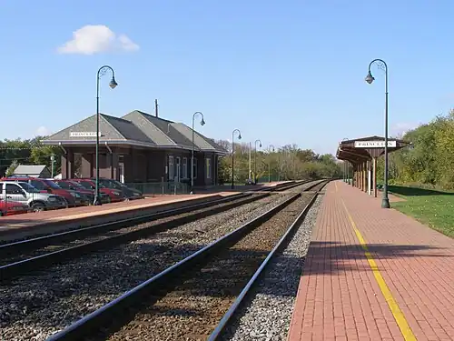 Princeton station is an Amtrak intercity train station at 107 Bicentennial Drive in Princeton, Illinois. The station was built in 1911 by the Chicago, Burlington and Quincy Railroad[2] and is listed as "Princeton City" on the Amtrak website and the List of Amtrak stations. Amtrak, the Illinois Department of Transportation and the city worked together to renovate the depot in 1998. Over the following six years, a new roof and gutters were installed, brickwork was repaired and the restrooms were upgraded.[3]